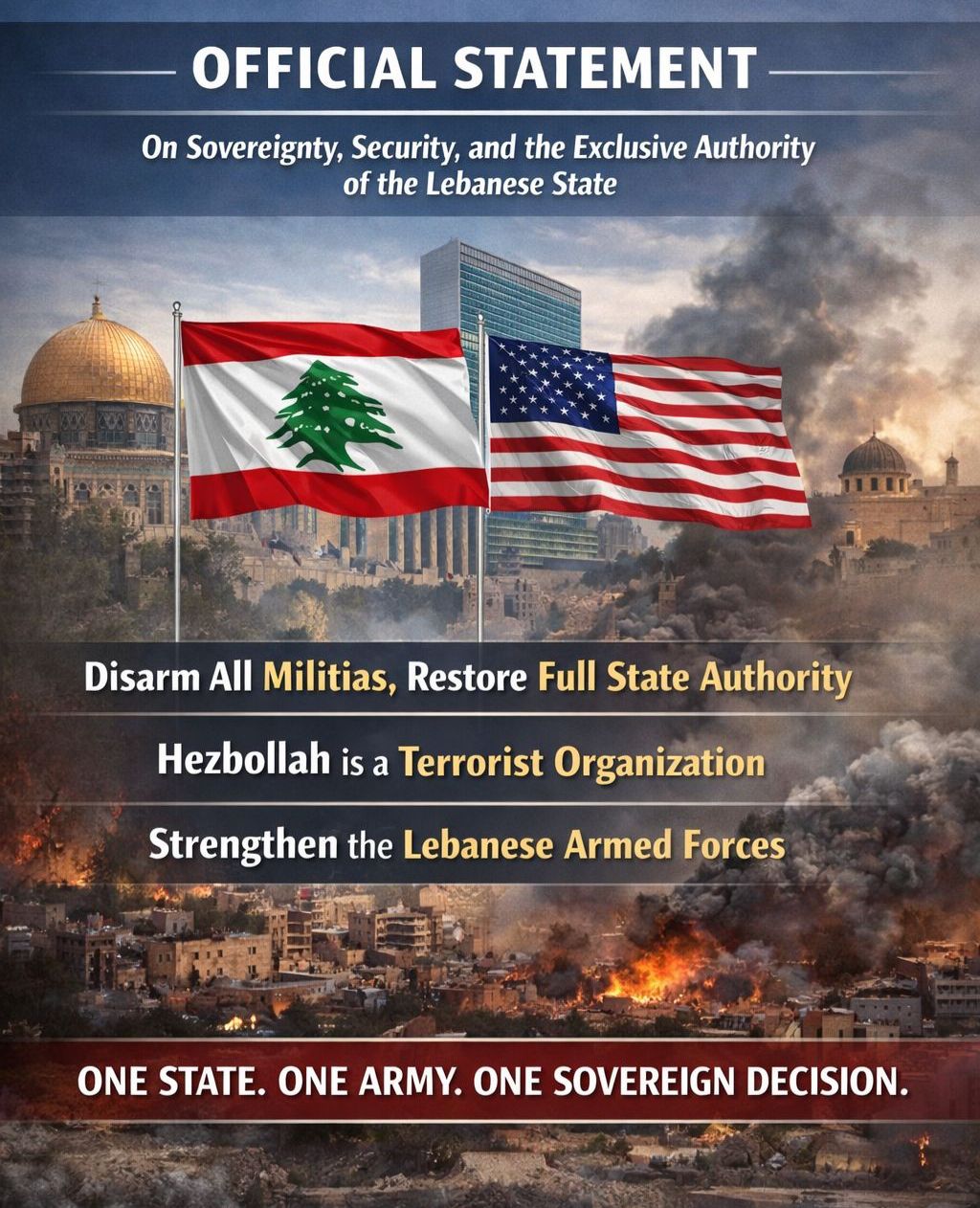 No armed faction has the authority to unilaterally drag the Republic of Lebanon into a regional war. The constitutional decision of war and peace rests exclusively with the legitimate institutions of the Lebanese state, not with any militia operating outside its sovereign authority.